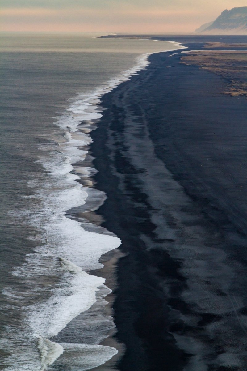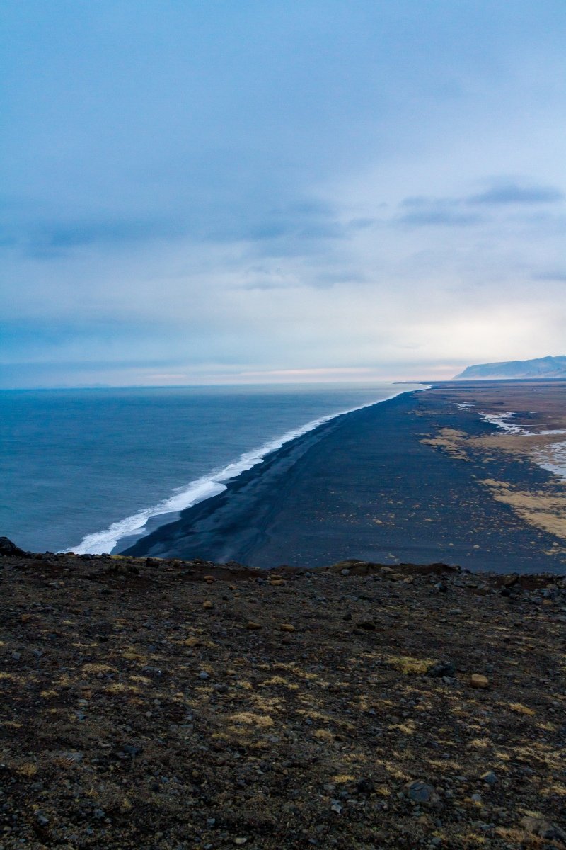 From on top of this mountain (we drove up there, thankfully) we could look way back along the black beach, past our tiny little cottages and the plains to the huge mountains behind us, looming and surrounding us.