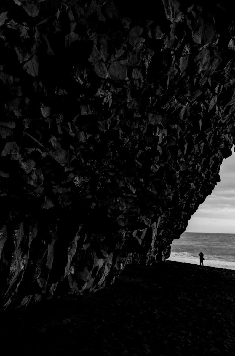 Below the view to the mountains, under where I stand for the photograph and along the black sand are the basalt caves. Outside the caves are the hexagonal basalt columns (if you don’t want to go as far, you can see some pretty much the same in Kiama…go to Iceland). I believe they are shaped like that because of specific conditions around the cooling rate of lava (?). They are pretty rad however they’re formed. And fun for climbing.