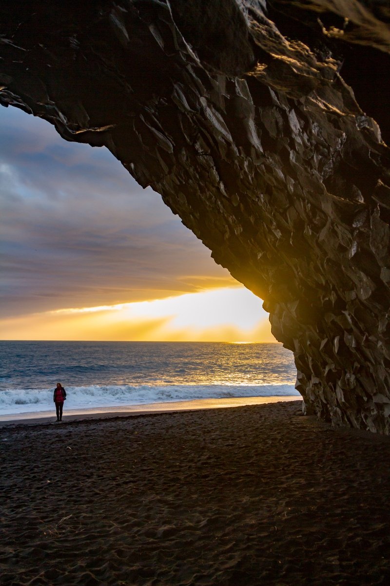 The basalt cave remains as impossible as ever to capture, but the orangey-yellow light makes beautiful patterns over the rocks.