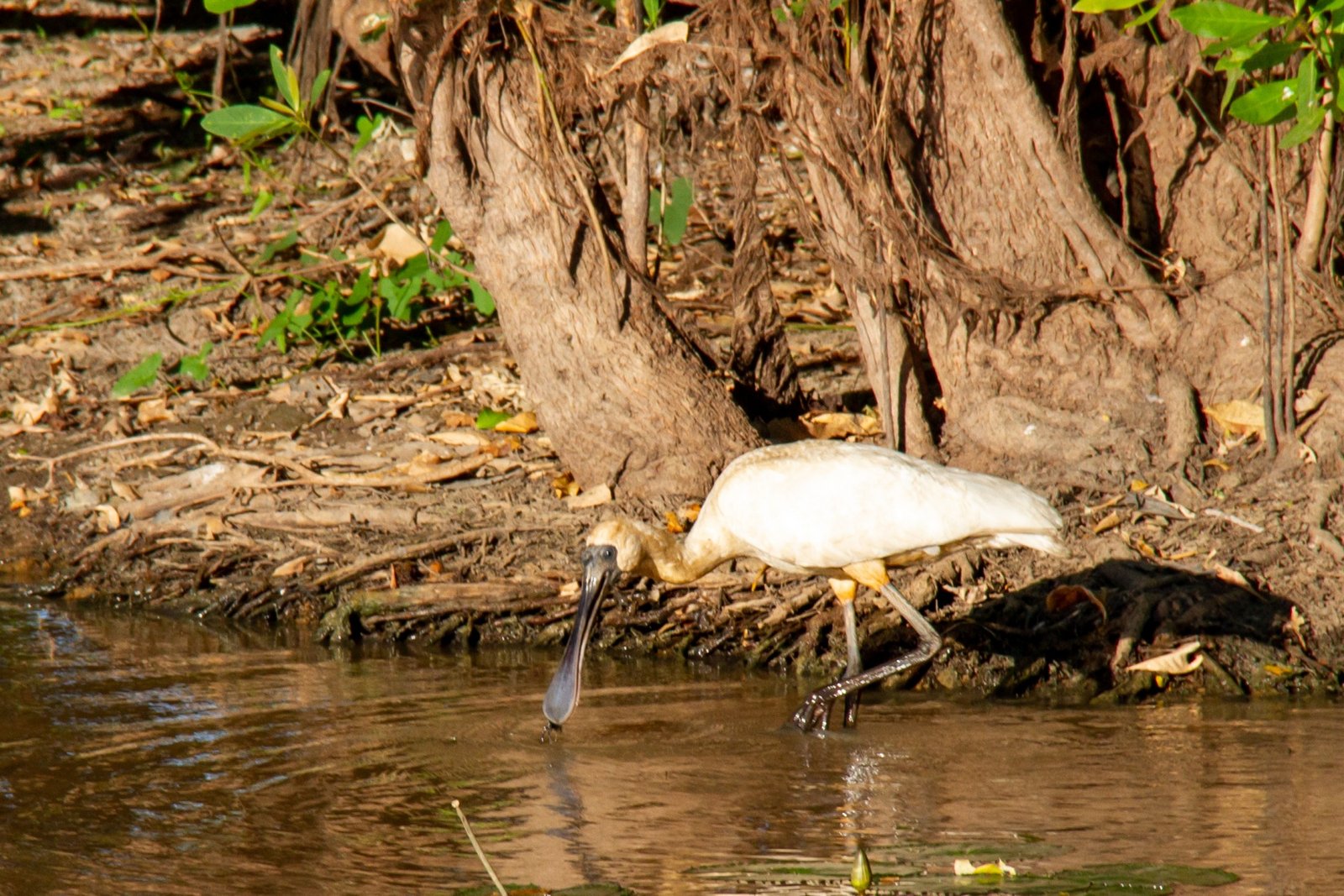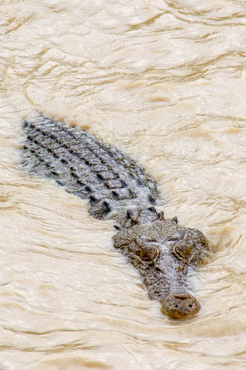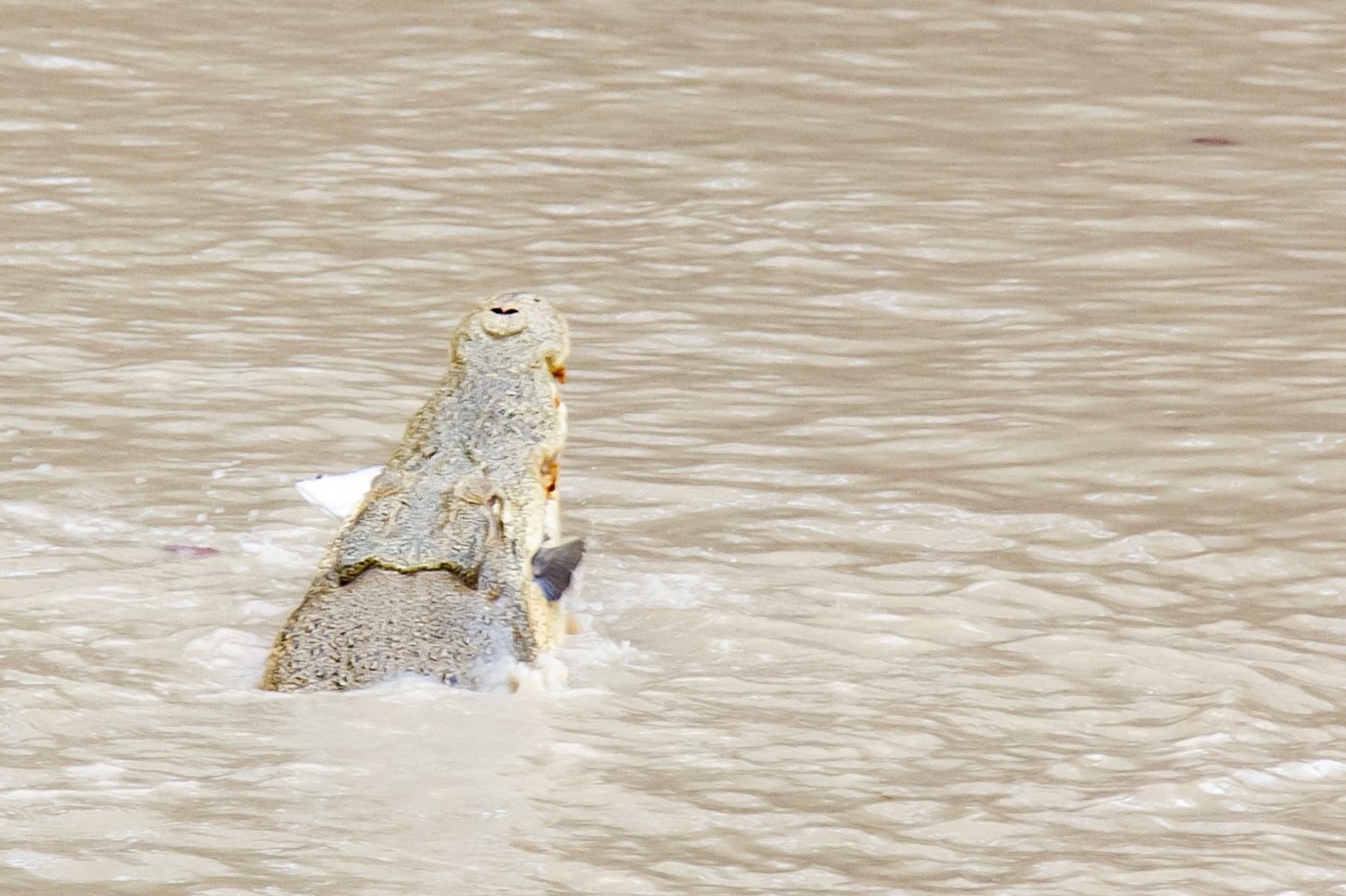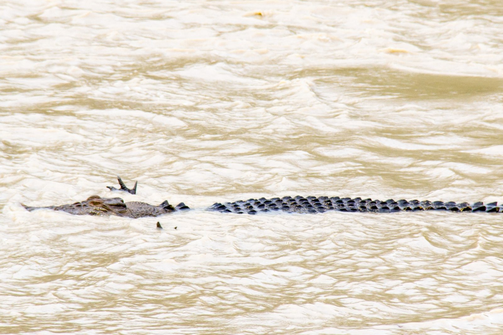 Now and again a 4wd will drive over the crossing, crocodiles reluctantly giving way. The local drivers know the path to avoid two big holes, but the visitors reliably drop into both, sending waves over the nearby crocodiles. Two times Commodores make the crossing, really drawing the onlooker’s attention. It looks incredibly sketchy.