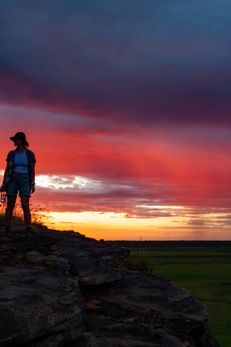 The spinifex around us starts to catch rays of golden light, as does the Ubirr rock face.