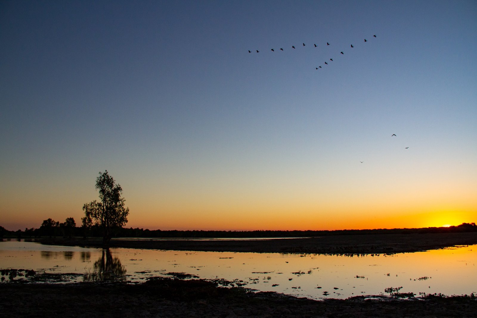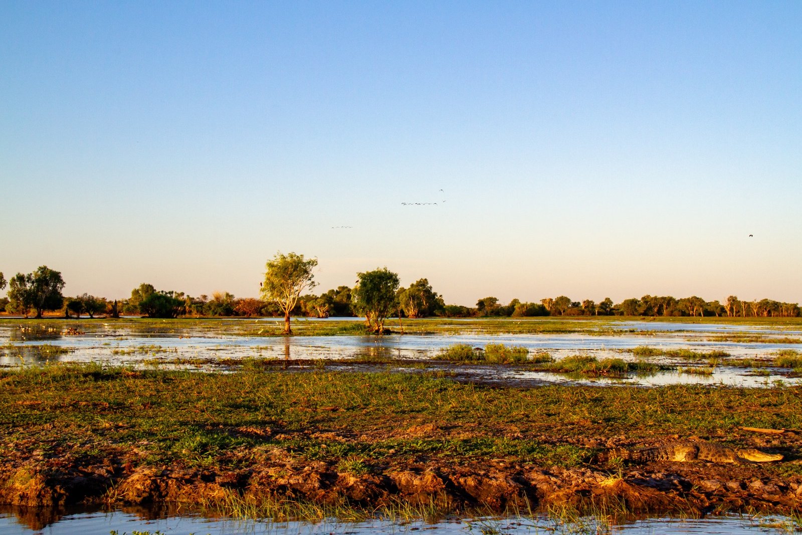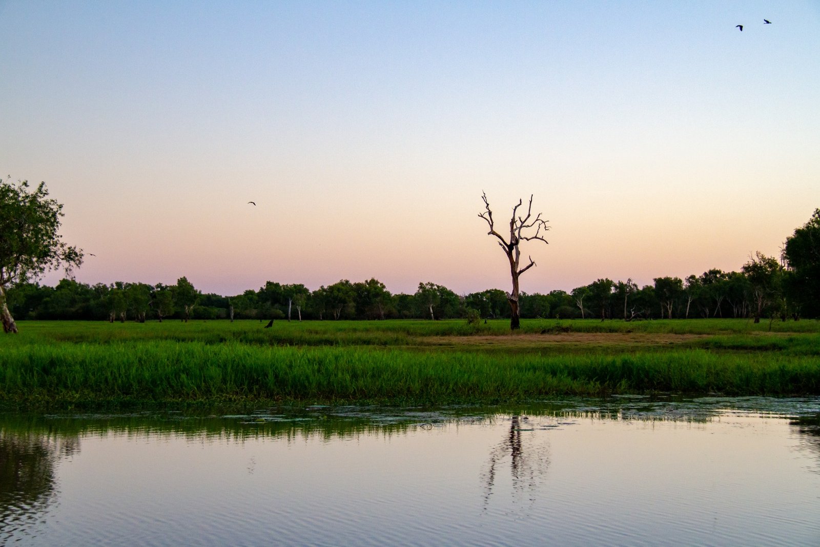 There is a crossing over the East Alligator River which attracts crocodiles at high tide. They wait to catch fish as they swim across the ford. Once we’re settled at the camp we head to Cahills Crossing.