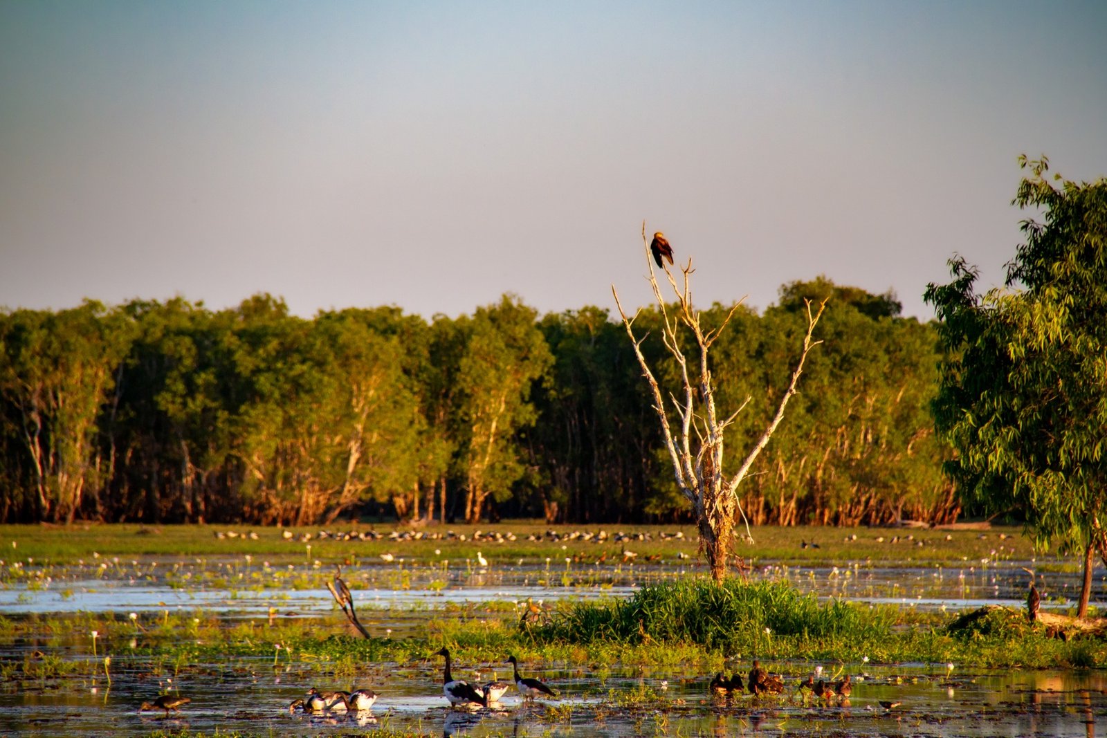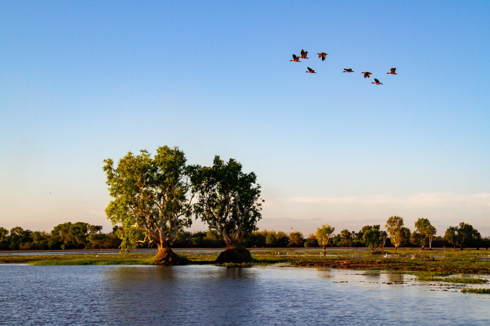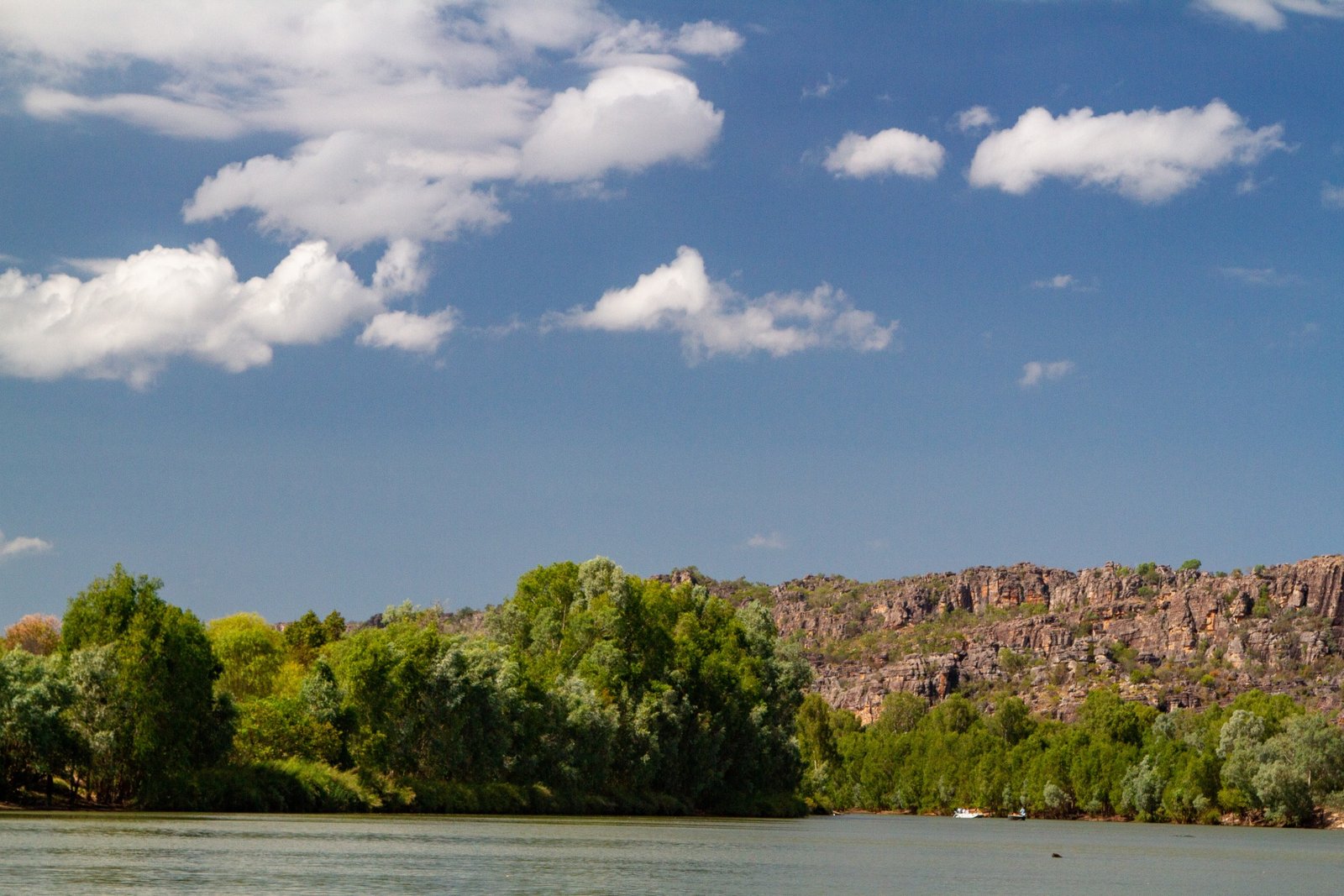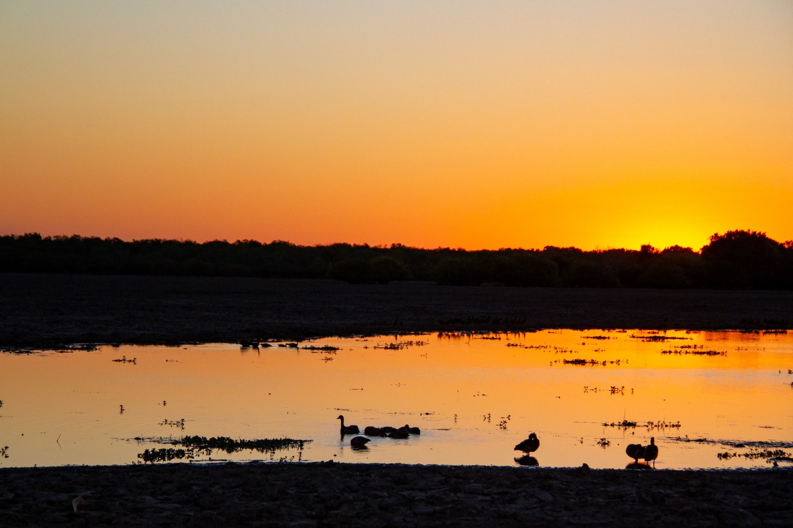 There is a crossing over the East Alligator River which attracts crocodiles at high tide. They wait to catch fish as they swim across the ford. Once we’re settled at the camp we head to Cahills Crossing.