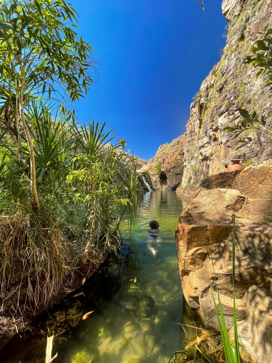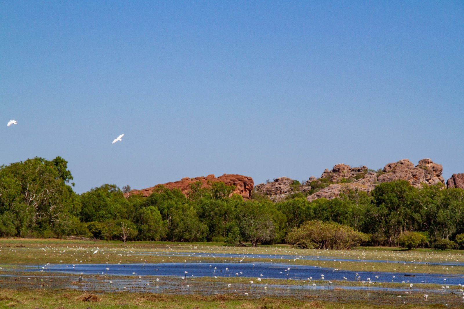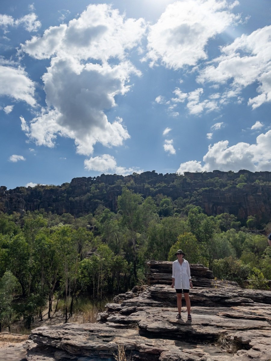 We leave Edith Falls and drive up to Jabiru in Kakadu. We’ve heard that some people complain that Kakadu is just scrubby bush and therefore uninspiring [Anna: Spoiler alert, some people are wrong, but I concede Kakadu is a difficult park to plan/navigate]. The main road through is fairly long (it’s 2 hours from Pine Creek to Jabiru) and the bush is scrubby, so I can see where they impression comes from, but there are big rivers and huge rocky formations along the way – all hinting that there’s plenty to find in the park.