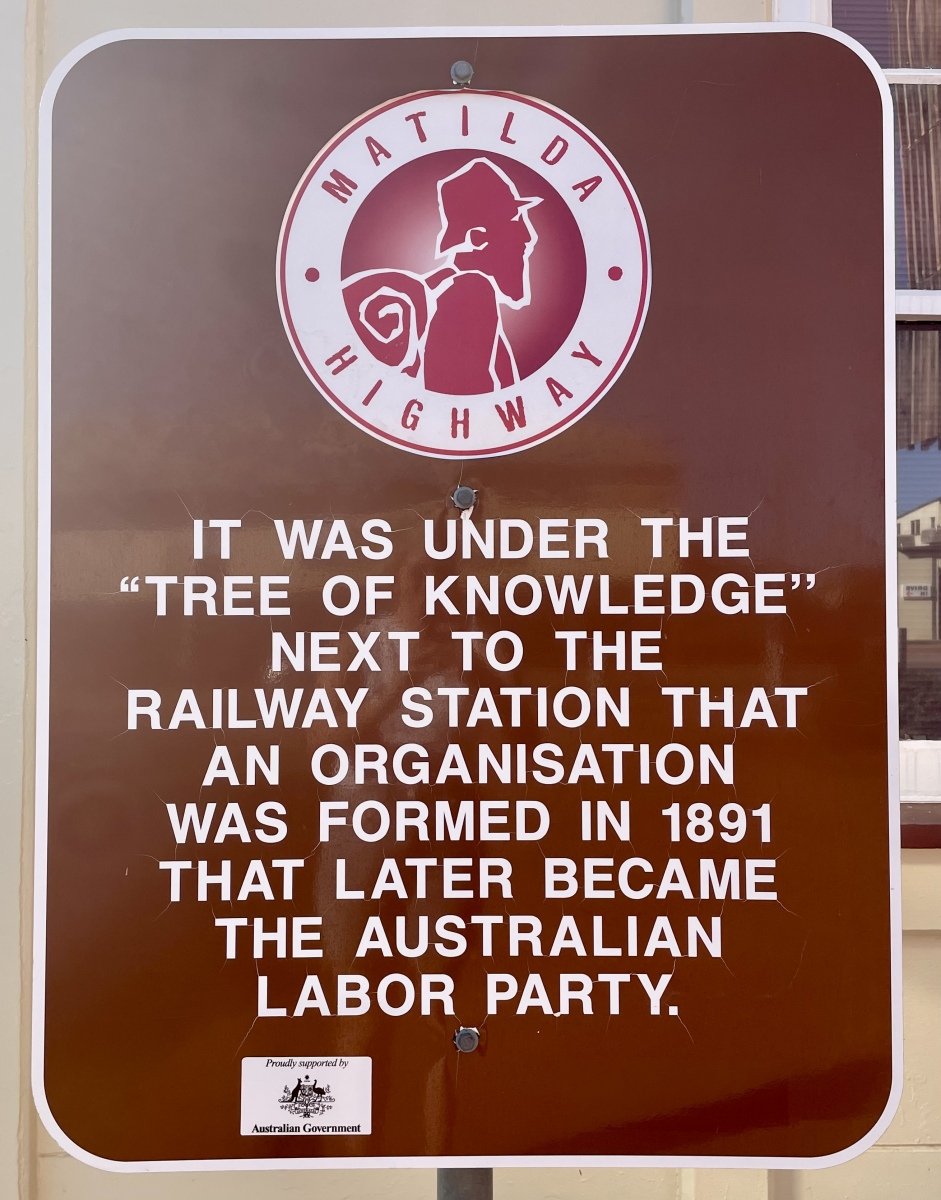So far the drive has been pretty steady landscape, unremarkable but not unpleasant. Heading out of Emerald on our way to Longreach we start to encounter mountain passes, rugged terrain and rocky outcrops. It’s a happy surprise which makes the driving more interesting. We stop at the Tree of Knowledge in Barcaldine (where the Labor Party was formed).
