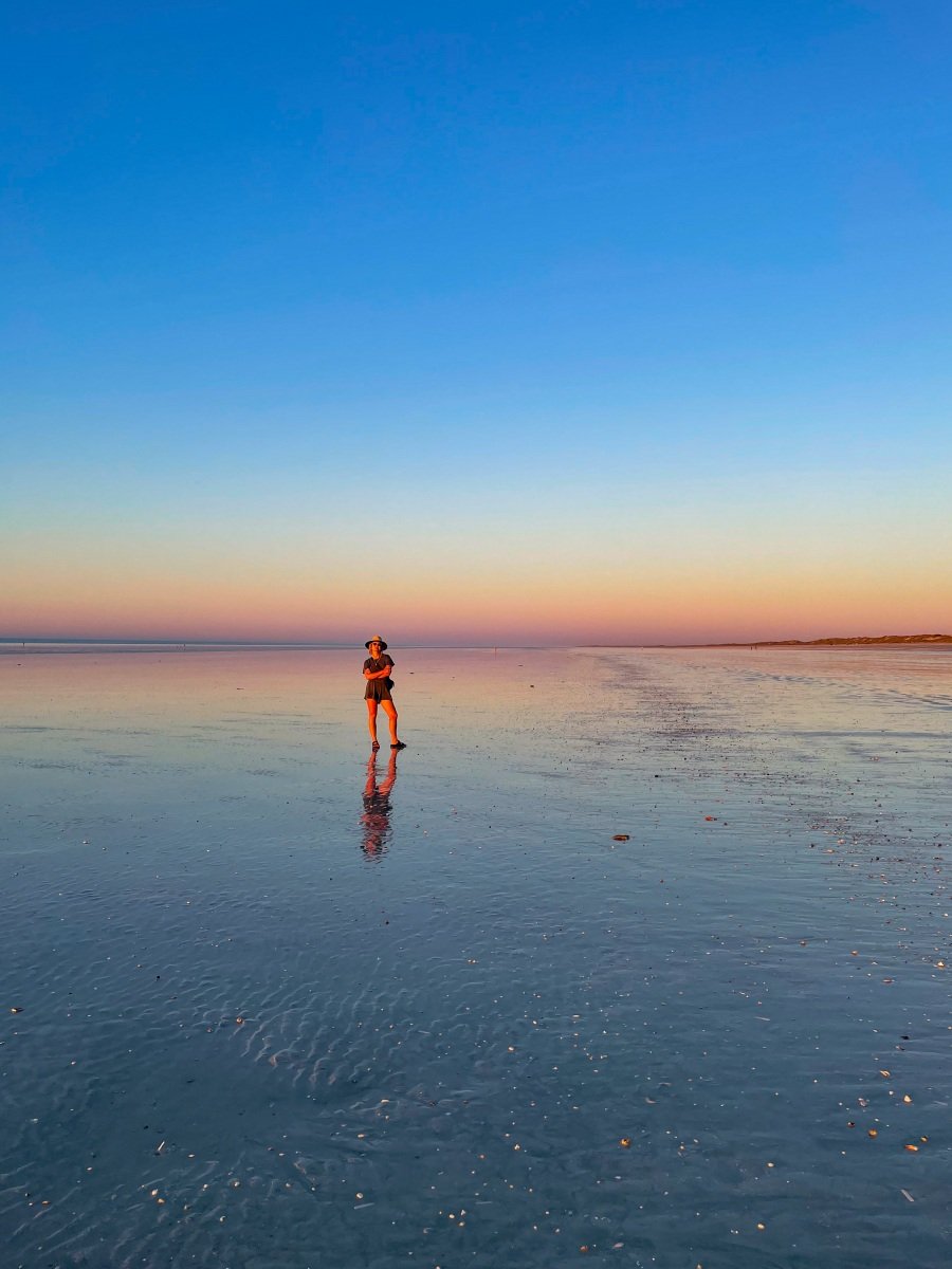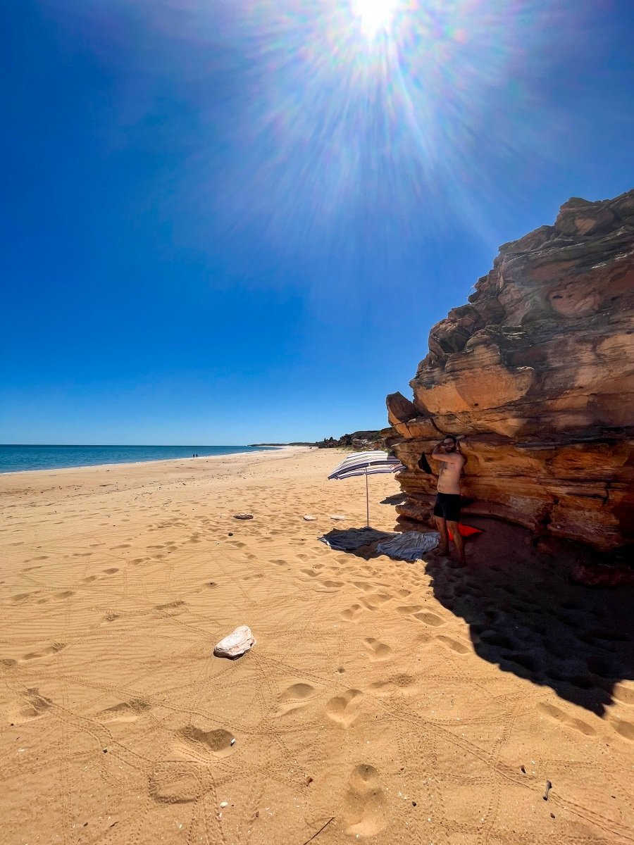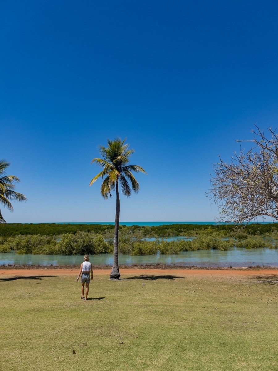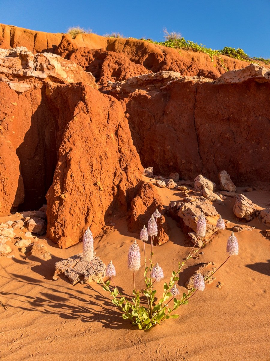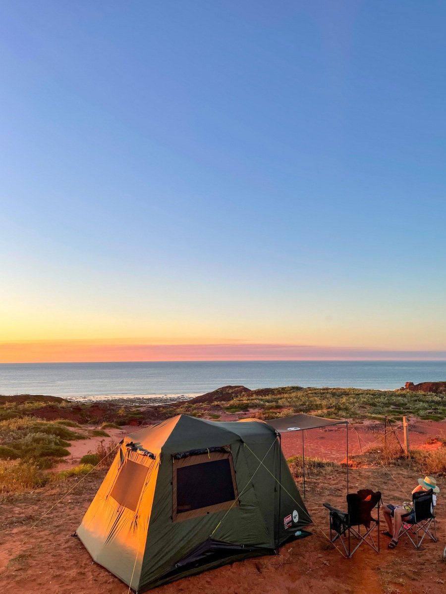 One of the absolutely cutest caravan parks we’ve been to, the 80 Mile Beach park has rows of trees separating the sites. and hedges and flowers at the ends of each row. There’s a big dune separating the park from the beach, which creates a sheltered space where the sound of the ocean wafts overhead.