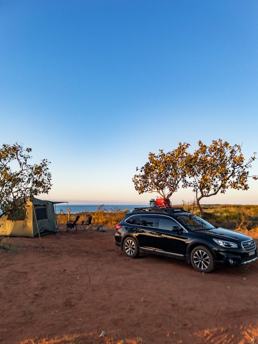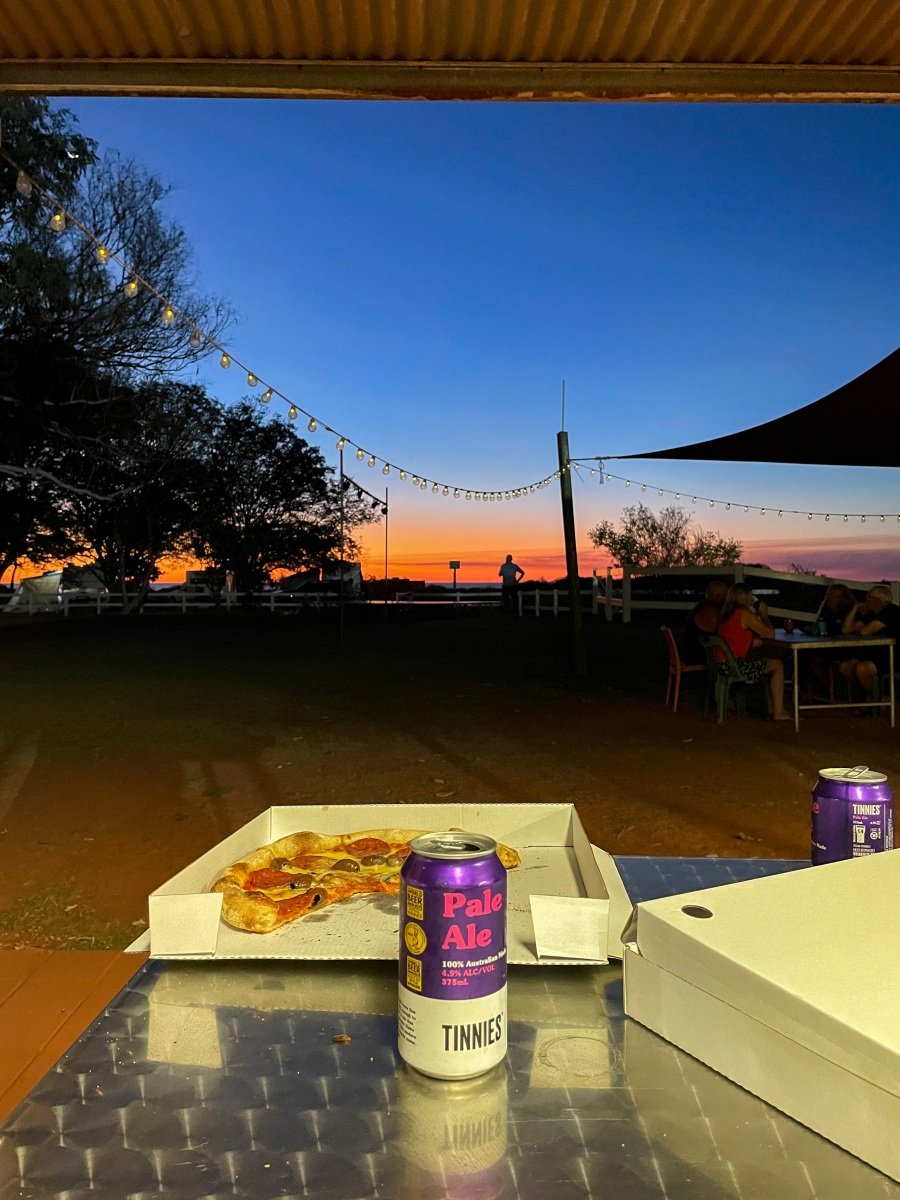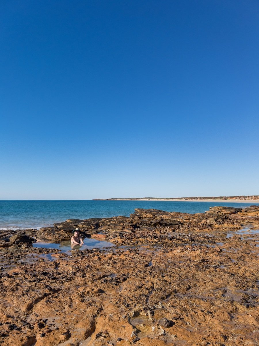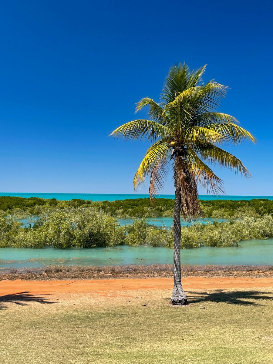 One of the absolutely cutest caravan parks we’ve been to, the 80 Mile Beach park has rows of trees separating the sites. and hedges and flowers at the ends of each row. There’s a big dune separating the park from the beach, which creates a sheltered space where the sound of the ocean wafts overhead.