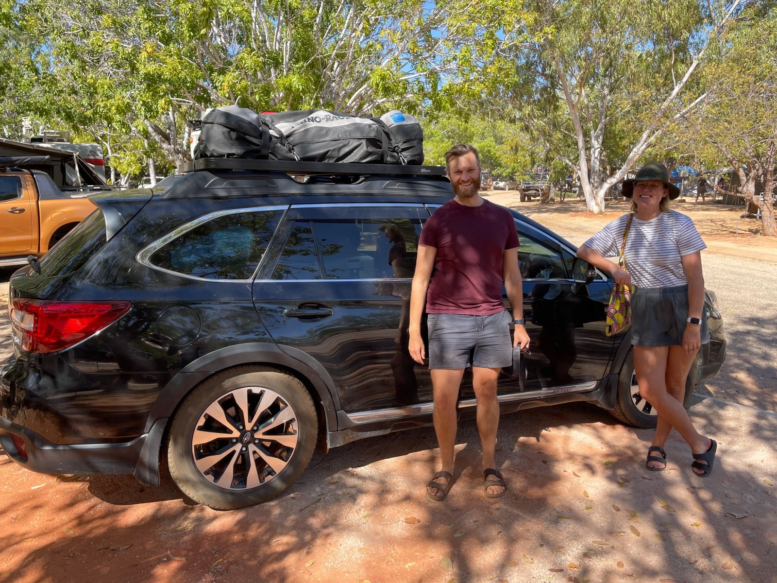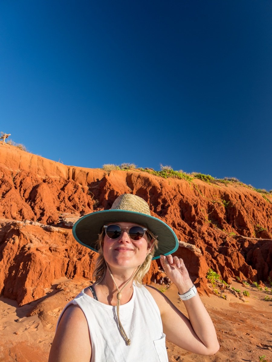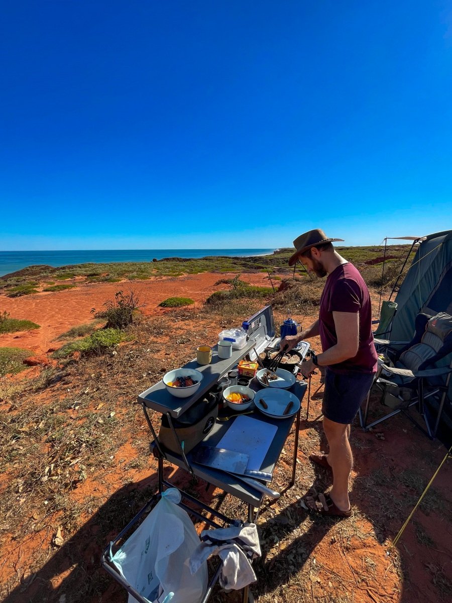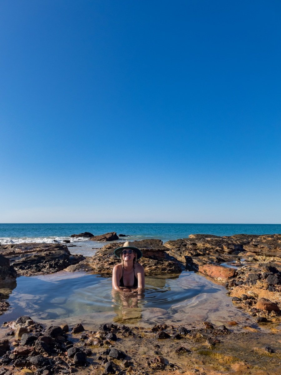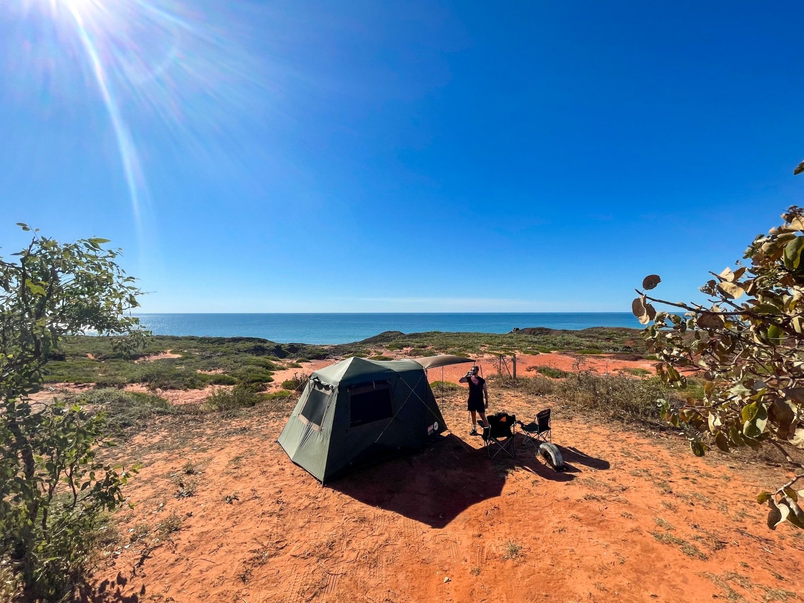 One of the absolutely cutest caravan parks we’ve been to, the 80 Mile Beach park has rows of trees separating the sites. and hedges and flowers at the ends of each row. There’s a big dune separating the park from the beach, which creates a sheltered space where the sound of the ocean wafts overhead.